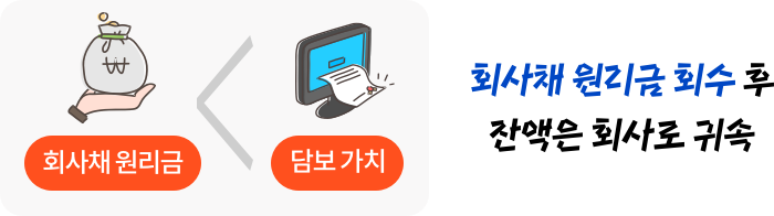 담보로 잡은 자산은 담보권자의 소유로 인정해 준다는 의미입니다. 회사채 원리금보다 담보가치가 더 크면 회사채 원리금만 회수하고 잔액은 회사에 귀속됩니다.