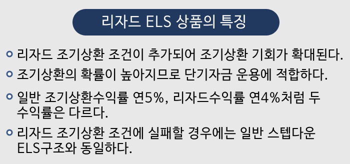 아울러 리자드 조기상환 조건이 1차, 2차에 걸쳐 복수로 설정되는 멀티리자드 ELS 구조도 있습니다.