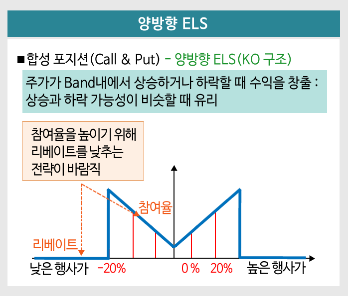 반대로 참여율이 낮아지거나, 리베이트가 낮아지면 더 안정적인 성격의 ELS로 볼 수 있습니다.