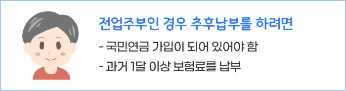 전업주부도 연금 보험료를 추후납부할 수 있습니다.