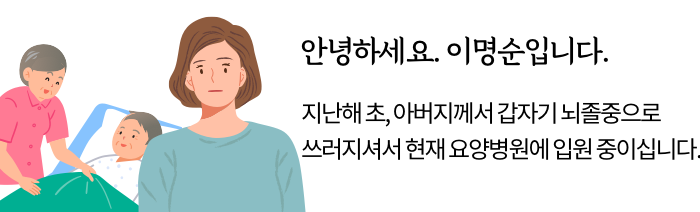 지난해 초, 아버지께서 갑자기 뇌졸중으로 쓰러지셔서 현재 요양병원에 입원 중이십니다.