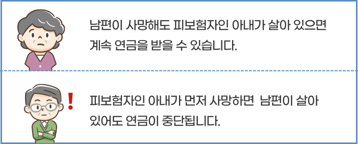 부부 중 한 명이 먼저 사망하는 경우 남은 배우자에게 쥐어지는 소득이 얼마나 되는지, 매달 생활비로 얼마를 쓸 수 있는지 파악해야 합니다. 부부 중 어느 누가 먼저 사망하더라도 홀로 남은 배우자가 살아가기에 충분한 소득이 있는지 점검해야겠죠.