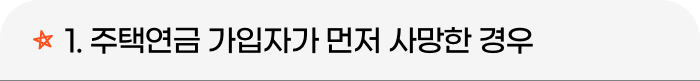 주택연금 가입자가 먼저 사망한 경우 월 지급금 지급이 정지되었다가, 배우자가 채무인수약정을 하고 6개월 이내에 담보주택 소유권을 취득하면 월 지급금 지급이 재개됩니다. 하지만 6개월 이내에 살아있는 배우자가 담보 주택의 소유권을 완전하게 확보하지 못하면, 계약이 종료되고 부채를 상환해야 합니다.