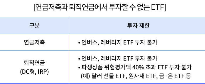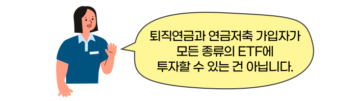 그러면 퇴직연금과 연금저축 가입자가 ETF에 투자할 때 알아 둬야 할 사항은 뭐가 있을까요?