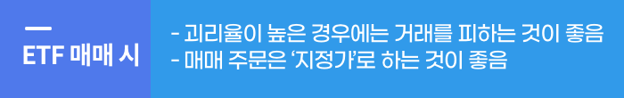 ETF를 제값에 거래하려면 기준가격으로 사고팔면 됩니다. 하지만 실제 거래가 매번 정확하게 기준가격에 맞춰 이뤄질 수는 없습니다. 때로는 기준가격보다 비싸게 할증거래 되기도 하고, 싸게 할인거래 될 때도 있습니다.