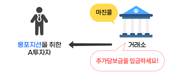 따라서 계약을 계속 유지하고 싶다면 담보금(증거금)을 더 넣으라는 요청을 하는 것입니다. 만약 거래소 요청에 응하지 않는다면 거래소는 A투자자의 롱포지션을 강제적으로 청산, 즉 매도해 버립니다. 상당히 강력한 관리 방법이며, 포지션을 유지하고 싶다면 마진콜에 응할 수밖에 없습니다.