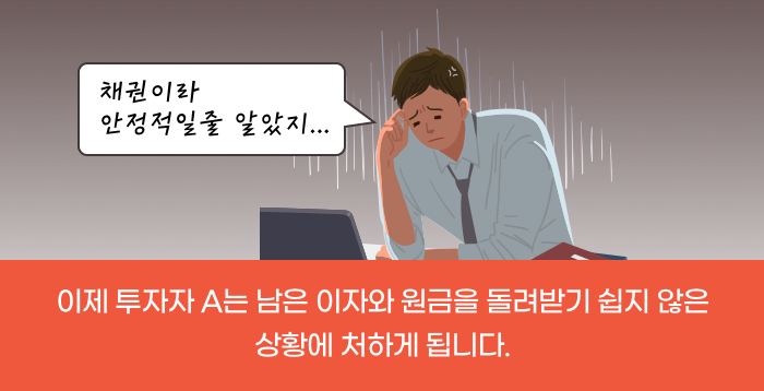 2년 만기 채권이었는데, 만기일 6개월을 남겨둔 시점에 시장에 투자한 회사의 분식회계 소문이 나돌더니 급기야 원리금 지급이 힘들다는 연락을 받게 됩니다. 회사가 부도상황에 놓인 거죠.