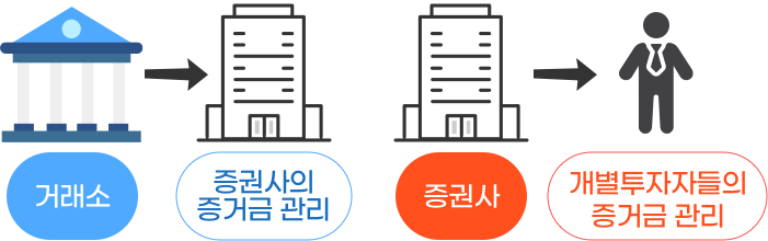위의 사례에서는 편의상 개별 투자자의 증거금 관리를 거래소에서 직접 하는 것으로 설명하였지만, 실제는 증권사의 증거금 관리를 거래소에서 하고 개별 투자자들의 증거금 관리는 증권사에서 합니다. 따라서 개별 투자자의 마진콜도 증권사에서 합니다.