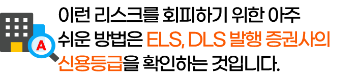개인 투자자 입장에서 거래상대방 리스크는 ELS, DLS를 발행하는 증권사의 채무불이행 리스크 일 것입니다.