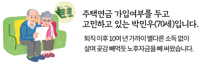 주택연금 가입여부를 두고 고민하고 있는 박민우(70세)입니다.