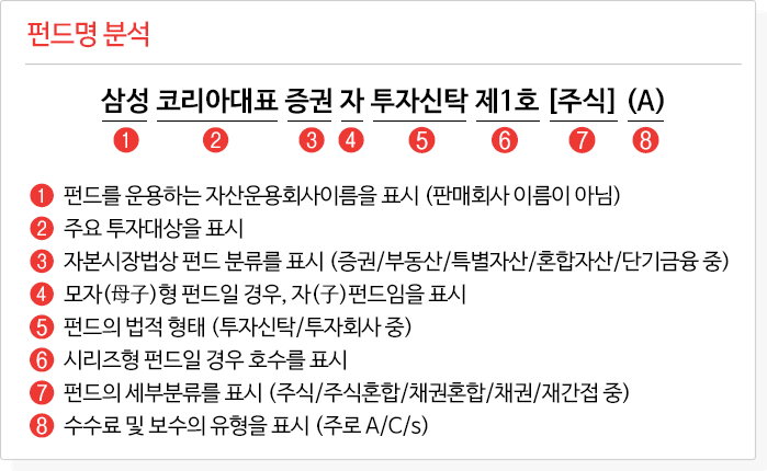 당연히 펀드에 가입하시기 전에 반드시 확인해 볼 필요가 있고, 펀드명에 있는 여러 정보를 통해서도 수익과 관련한 정보를 알아볼 수 있습니다.
