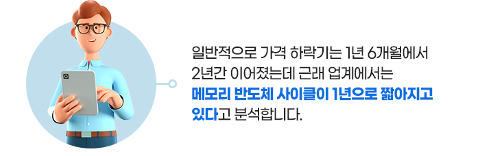 메모리 반도체는 투자에 따라 공급이 계단식으로 증가하기 때문에 주기적인 공급 과잉을 피할 수 없습니다. 메모리 반도체 공급을 늘리기 위해서는 대규모 설비투자가 필요합니다.