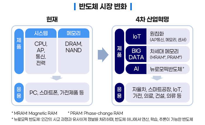 이제는 4차 산업혁명시대를 맞아 클라우드, 빅데이터, 인공지능, 사물인터넷, 증강현실, 가상현실, 도심항공교통(UAM: Urban Air Mobility), 로봇 등 고성능 반도체의 수요가 훨씬 더 풍부해졌습니다.