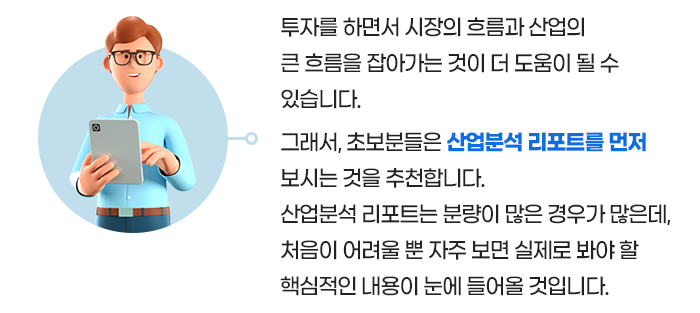 기업 종목분석에서부터 산업분석, 거시경제분석, 투자전략 분석, 시황정보까지 다양한 정보를 담고 있기 때문에 초보 투자자분들에게 많은 도움이 될 것입니다