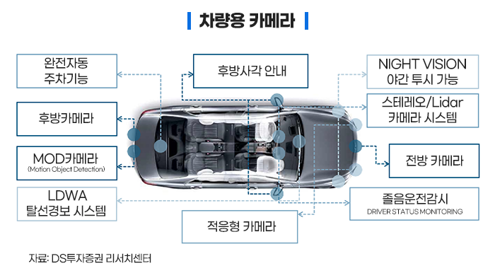 국내에서는 삼성전기, LG이노텍, 엠씨넥스, 파트론 등이 발 빠르게 대응하고 있다고 하는데, 자율주행이 고도화될수록 카메라 모듈에 대한 수요는 앞으로도 폭발적인 증가를 할 것으로 전망되고 있습니다.
