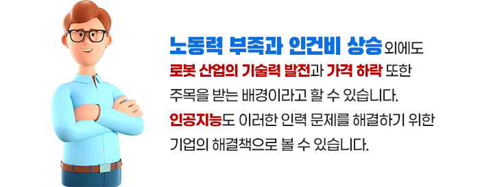 이러한 이유 때문에 삼성전자, 현대차 등 유수의 국내 기업들이 차세대 사업으로 로봇 사업을 주목하고 있는 것입니다.