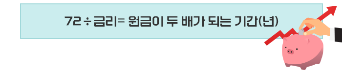 이렇게 이자에 이자가 붙어서 자산이 늘어나는 것을 ‘복리 효과’라고 합니다. 복리효과를 설명하는 방법으로 72의 법칙이 있습니다.
