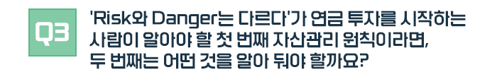 그래서 제가 이번 시간에 말씀드릴 ‘연금투자자가 알아야 할 자산관리 원칙’ 중 첫 번째 주제를 ‘위험과 리스크는 다르다’로 꼽아 보았습니다.