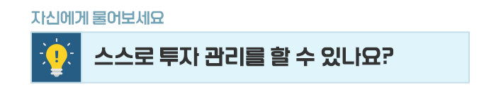 이때는 스스로 투자 관리를 할 수 있는 역량과 시간이 되는지 물어야 합니다.