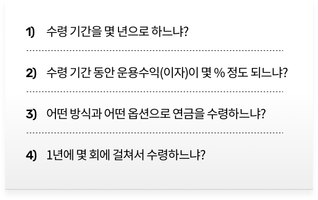 연금수령액은 연금수령 옵션을 어떻게 설계하느냐에 따라 달라질 수 있습니다.