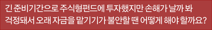 즉, 상대적으로 안정적인 채권형펀드나 정기예금 등을 주로 활용하는 게 좋습니다.