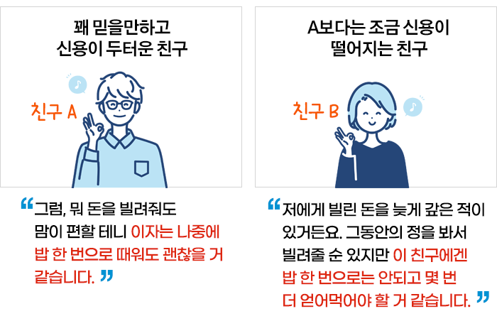 친구와의 친분뿐만 아니라 이 친구가 나중에 돈을 갚을 수 있는