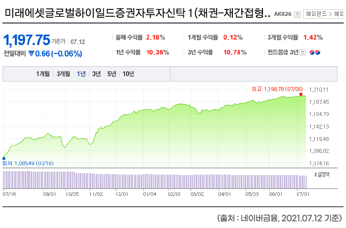 특히 잔존만기 5년 이내인 선진국의 단기 하이일드채권에 투자하는 특징이 있습니다.