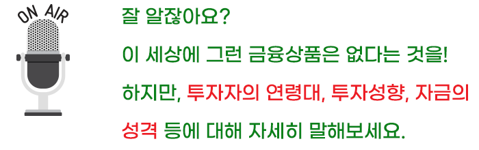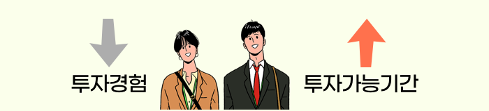 일반적으로 20~30대의 사회초년생은 투자경험이 부족한 반면 향후 투자가능 기간이 길다는 특징이 있죠.