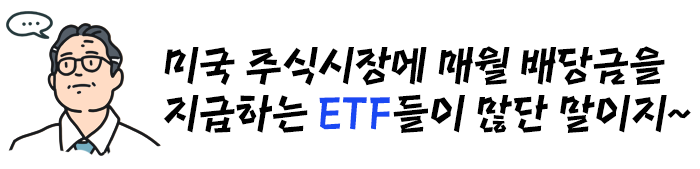ETF 시장이 발달한 미국 주식시장에는 매월 배당금을 지급하는 ETF들이 상당히 많이 상장되어 있습니다.