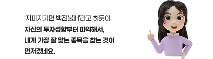 - 본 콘텐츠에서 제공되는 금융상품 및 시장 정보 등을 이용하여 투자를 했을 시 발생하는 손실의 귀책사 유는 이용자에게 귀속되오니 투자는 이용자 자신의 판단과 책임 하에 신중히 결정하여 주시기 바랍니다.