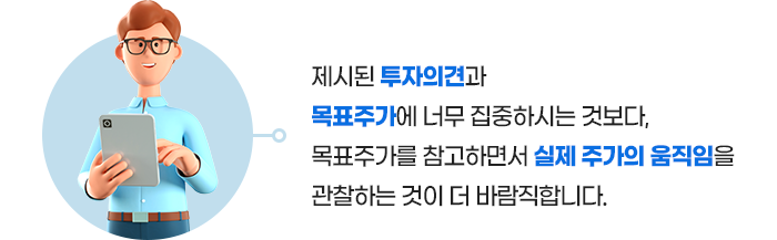 하지만, 이것은 꼭 도달한다고 보기보다 애널리스트가 중기적 관점에서 예상한 적정 주가 정도로 보시는 것이 좋습니다. 목표주가를 참고하면서 현재 주가의 움직임을 관찰하는 것을 권유 드립니다.