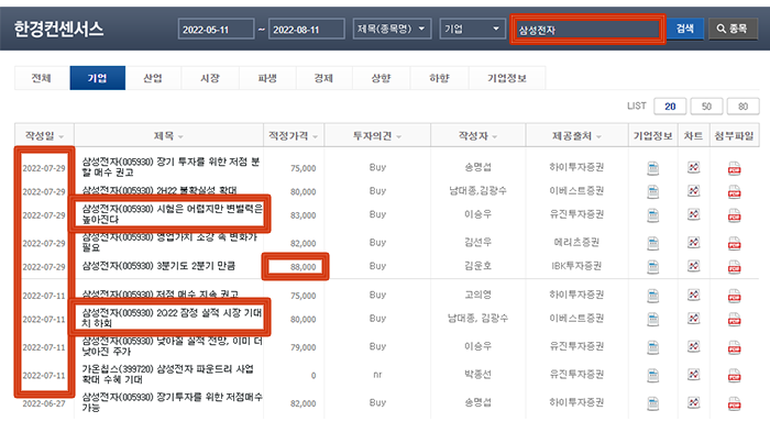 여기에는 7월에만 리포트가 8개나 있음을 알 수 있습니다. 종목을 검색하더라도 여러 곳을 확인해보는 것이 필요하다는 말씀을 드리고 싶습니다.
