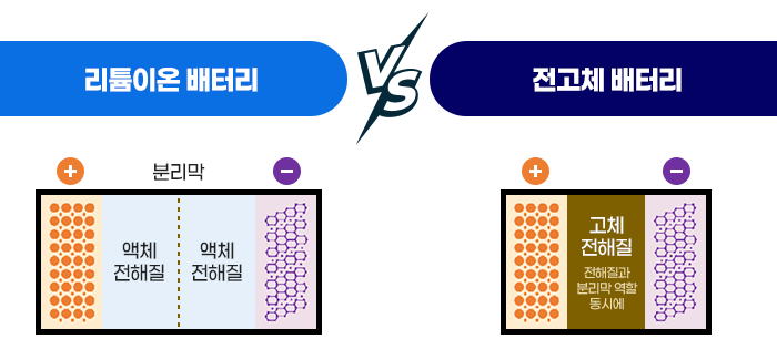 하지만, 현재 가장 많이 사용되는 2차 전지인 리튬이온 배터리의 경우 액체 전해질로 에너지 효율이 높지만 수명이 상대적으로 짧고 전해질이 가연성 액체여서 고열에 폭발할 위험이 큽니다.