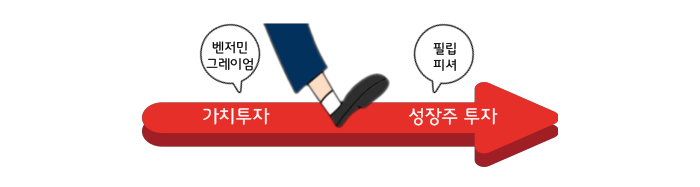 벤저민 그레이엄과 필립 피셔는 철저한 분석을 통해 좋은 주식을 골라 투자한다는 데는 같은 의견이었으나, 기업을 선정하는 데 있어 그레이엄이 숫자를 통한 분석에 더욱 비중을 두었다면, 피셔는 보이는 숫자보다 그 기업의 잠재력, 숨은 가치를 찾기 위한 질적인 분석에 더욱 초점을 맞췄다는 데서 차이가 있다고 할 수 있습니다.