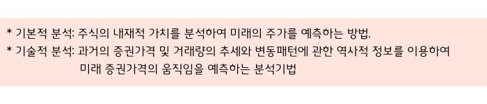 주식시장에서 기업을 분석하는 방법은 기본적 분석과 기술적 분석*이 있으며, 기본적 분석의 방법에는 양적 분석과 질적 분석이 있습니다. 양적 분석이란 각종 수치를 통해 기업을 분석하는 것이고, 질적 분석이란 숫자로는 파악이 불가능한 부분, 즉 경영자의 능력이나 노사관계 등을 통해서 기업을 분석하는 것입니다.