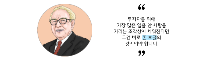 존 보글은 투자자들이 맡긴 자산은 가장 성실하고 효율적이며 경제적으로 운용되어야 한다고 생각하였습니다. 그리고 누구나 누릴 수 있는 효율적인 투자는 거래나 운용 등에 들어가는 비용을 최소화하는 것이라는 생각으로, 최초의 시장 전체를 담은 인덱스 펀드를 만들어 많은 사람이 손쉽게 투자할 수 있게 했습니다.