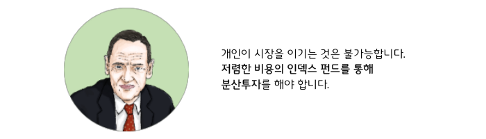 존 보글은 결과적으로 비용이 저렴한 인덱스 펀드에 투자하여 비용을 절감한 만큼을 장기간에 성과로 누적시키는 효과를 투자자들에게 최고의 자산관리 방법이라고 소개한 것입니다. 실제로 시장 전체 주가지수를 따르는 인덱스 펀드들은 다른 펀드들에 비해 훨씬 비용이 저렴합니다.