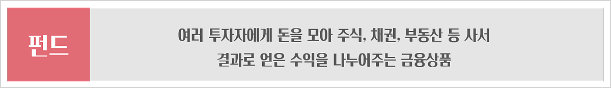 펀드는 여러 사람의 돈을 모아 기업이나 금융상품에 투자하는 것입니다. 주식 1주를 사는 것은 비싸지 않을 수 있지만, 여러 개의 기업과 상품을 동시에 사려면 큰돈이 필요합니다. 펀드는 이렇게 뭉칫돈으로 여러 개의 기업이나 다양한 자산에 투자하며, 적은 돈으로도 펀드에 가입할 수 있고, 수익도 나누어 받을 수 있습니다.