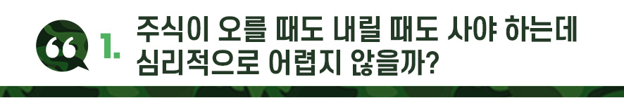 심리적으로 어렵다면 자동이체로 설정해 놓는 것도 방법이에요. 주가를 안 보는 거예요. 매달 자동으로 투자되게 해놓고, 훈련이나 업무에 집중하는 거죠.