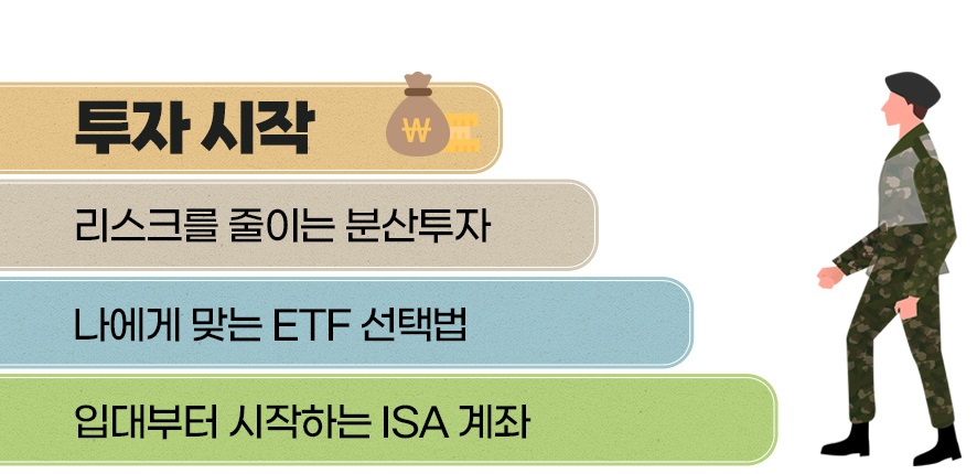 그래서 군 생활을 하면서 전략적으로 투자를 시작할 때 알아야 할 내용들을 다뤄보려고 합니다. 열심히 모은 투자 원금의 손실 위험성을 줄일 수 있도록 분산투자는 어떻게 시작해야 하는지, 군 복무 기간, 시간의 힘을 효과적으로 쓰는 방법을 다뤄 볼 거예요.