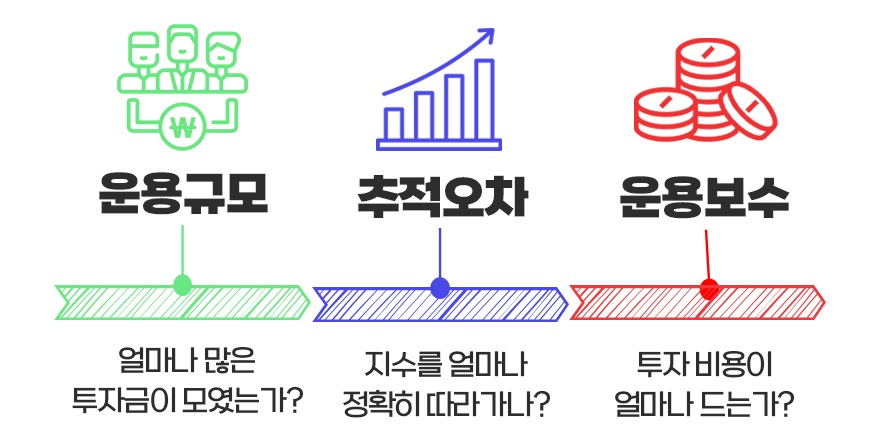 아무리 비용이 싸도 내가 투자한 ETF가 상장폐지되면 소용없어요. 그리고 나중에 팔고 싶을 때 제대로 팔 수 있어야 하죠. 운용규모가 너무 작으면 살 사람이 없어서 못 팔 수도 있어요. 그래서 제일 먼저 운용규모가 충분한지 확인하세요. 규모가 큰 ETF일수록 안정적이에요.