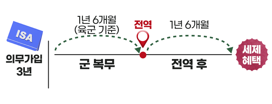 그런데 복무 중 가입하면 의무가입 기간을 쉽게 채울 수 있습니다. 이등병 때 ISA를 만들면 18개월 복무하는 동안 의무 기간이 자동으로 절반 채워지니까요.