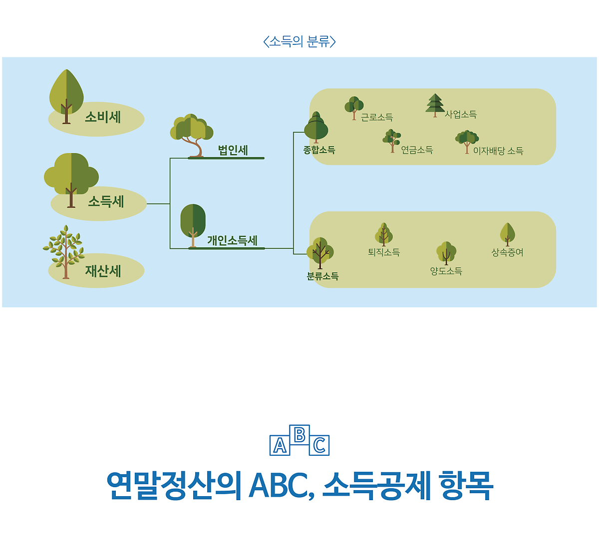 그전에 세금의 구조를 보면 세금에는 소비세, 소득세, 재산세의 종류가 있다. 소득이 있으면 내야 하는 소득세에는 개인이 내는 개인소득세가 있고, 법인이 내는 법인세가 있다. 개인이 내는 소득세에는 모든 소득을 합산하여 내는 종합소득세가 있고, 분류 소득이 있다. 분류 소득에는 종합소득과 분류되는 소득으로 퇴직소득, 양도소득, 또한 상속증여에 대한 세금도 종합소득에서 분류된다. 그럼 종합소득의 종류에는 직장 다니면서 버는 근로소득, 사업으로 버는 사업소득, 기타 연금소득이나 이자 배당 소득이 있다.