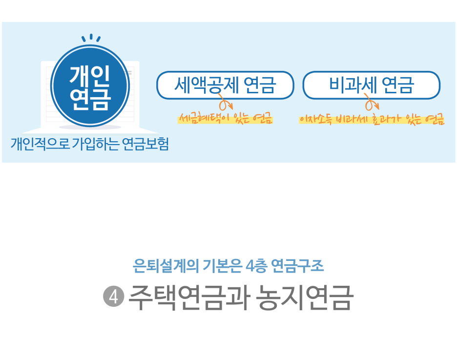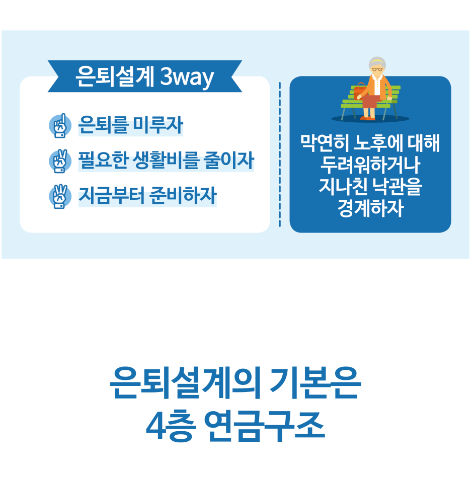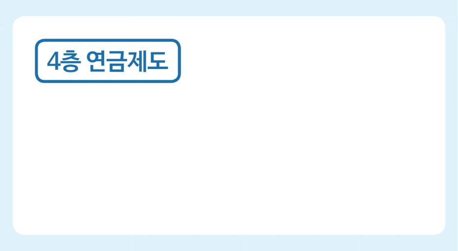 지금까지 얼마를 준비해야 한다는 점에 대해서 알아보았다. 다음은 어떻게 준비해야 하는가에 대한 이야기이다. 준비하는 방법은 여러 가지가 있겠지만 보통 4층 연금제도라는 것이 있다. 공적연금, 퇴직연금, 개인연금, 주택연금이 그것이다.