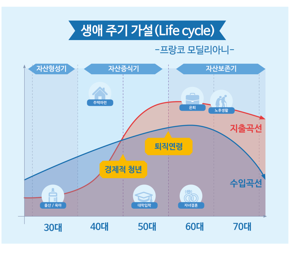 지금도 YOLO(Young Only, Live Once)이지만, 노후에도 YOLO는 적용된다. 즉 Old only, Live Once라는 뜻이다. 중요하지 않은 인생의 순간은 없다. 다만 그 삶의 균형을 젊을 때와 똑같이 늙어서도 균등한 수준으로 만들어 가야 한다. 그것이 1985년 노벨경제학상 수상자 프랑코 모딜리아니가 개발한 생애주기가설(라이프 사이클)의 핵심이다.