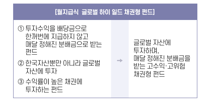 국채나 공채의 경우 수익률이 높지 않다. 우량 등급의 회사에서 발행하는 채권도 안전하지만 수익률이 높지 않다. 그래서 월지급식 글로벌 하이일드 채권형 펀드는 높은 수익률을 올릴 수 있는 비우량 등급의 회사채에 투자한다.