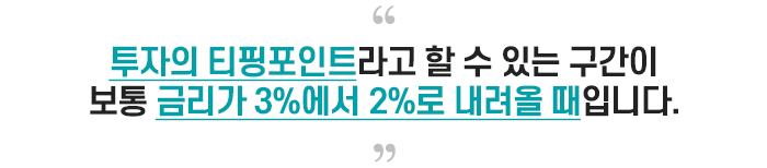 금리가 일정 수준으로 떨어지면 투자하는 사람이 확 늘어나는 구간이 있습니다. 저축을 해봤자 너무 수익이 낮으니까 투자를 해야겠다고 생각하는 사람들이 늘어나는 것입니다.