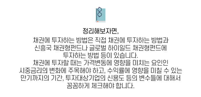 선진국이나 한국의 채권은 이미 금리가 상당히 낮기 때문에 높은 수익을 얻는 것이 힘듭니다.