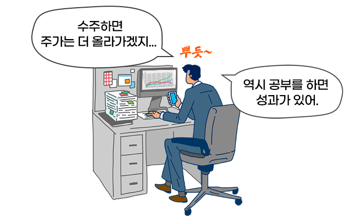 “안녕하세요, K 대리님. 그게 아니고요. 업무보다 제 주식 상담 좀 해주세요. 100% 호재라고 생각하고 주식을 샀는데 오히려 주가는 하락하네요. 이럴 때 어떻게 해야 할지 난감해요.”