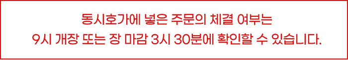개장 전 동시호가에 넣은 주문은 체결되지 않더라도 그대로 유효하기 때문에 주문을 유지한 채 시세 흐름을 지켜볼 수 있지만, 정정 또는 취소를 통해 시세를 맞춰 가는 게 좋습니다.